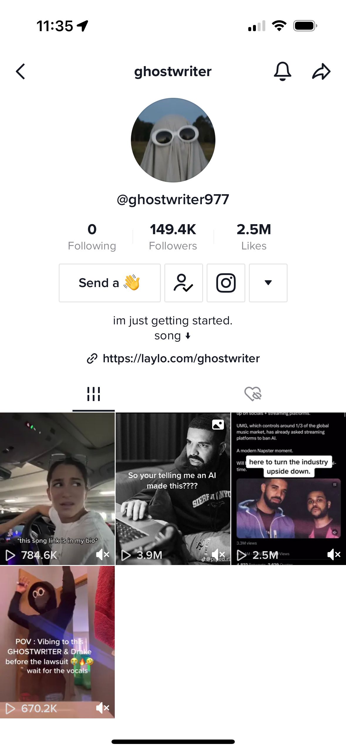 When I checked Ghostwriter’s TikTok account, the few videos that were still published also all had the sound muted, a common punishment TikTok doles out to copyrighted content.