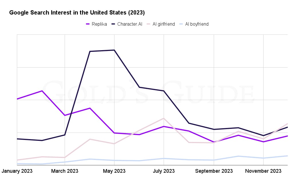 Even though Google search interest in Character.AI has dropped off since then, it’s held reasonably steady for the last six months.
