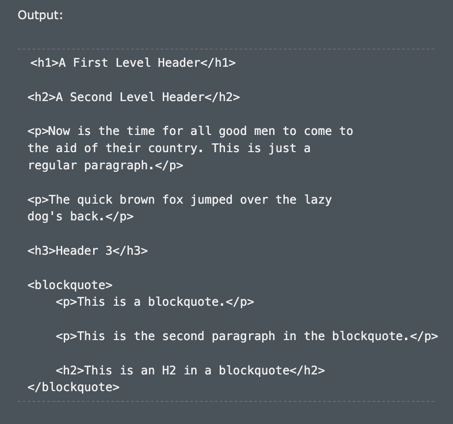 Left, easy-to-read Markdown text input; Right, complicated HTML code output. This is a big deal for web developers.