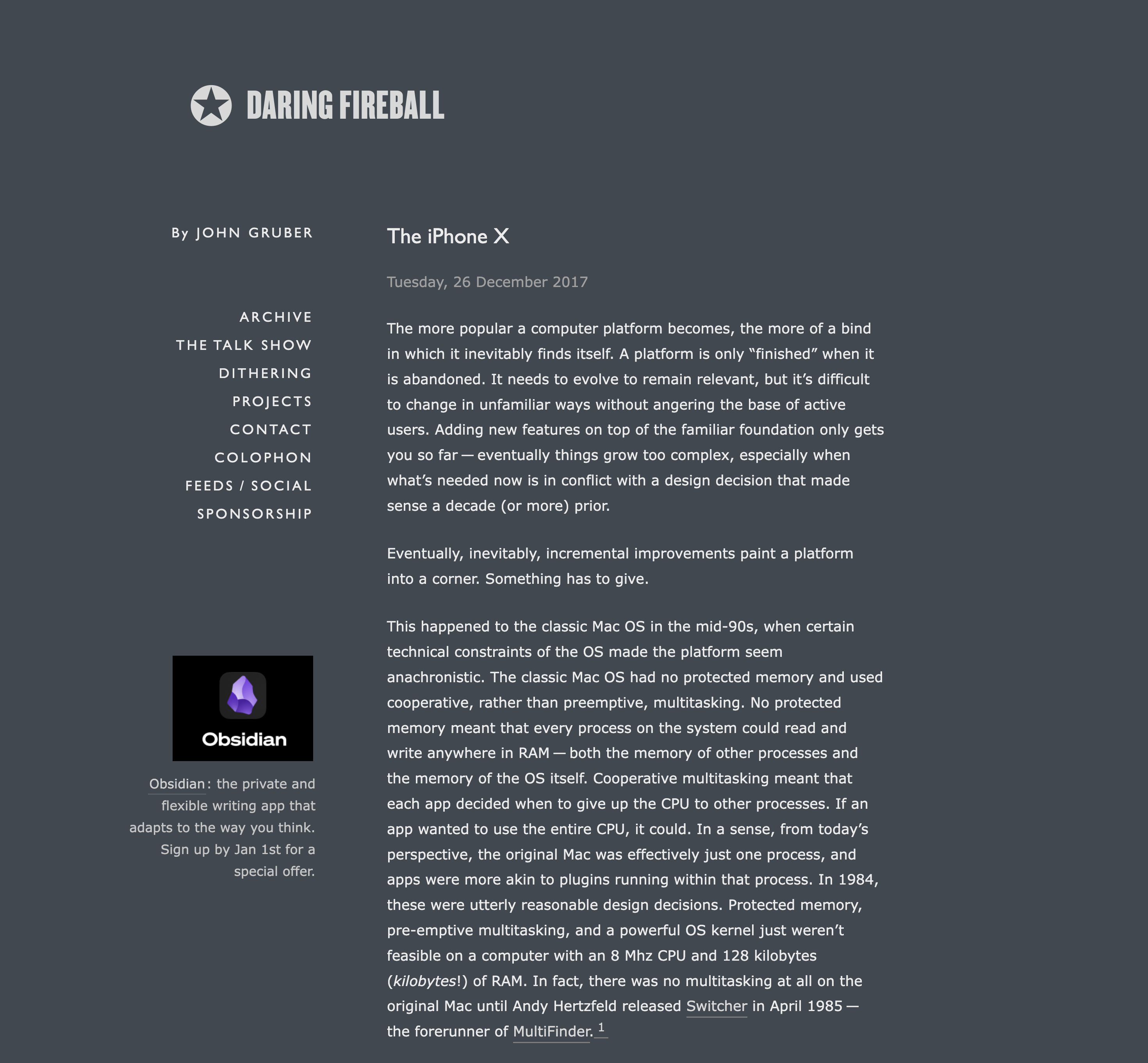 - Daring Fireball iPhone X review (📖 DaringFireball.net, 2017)