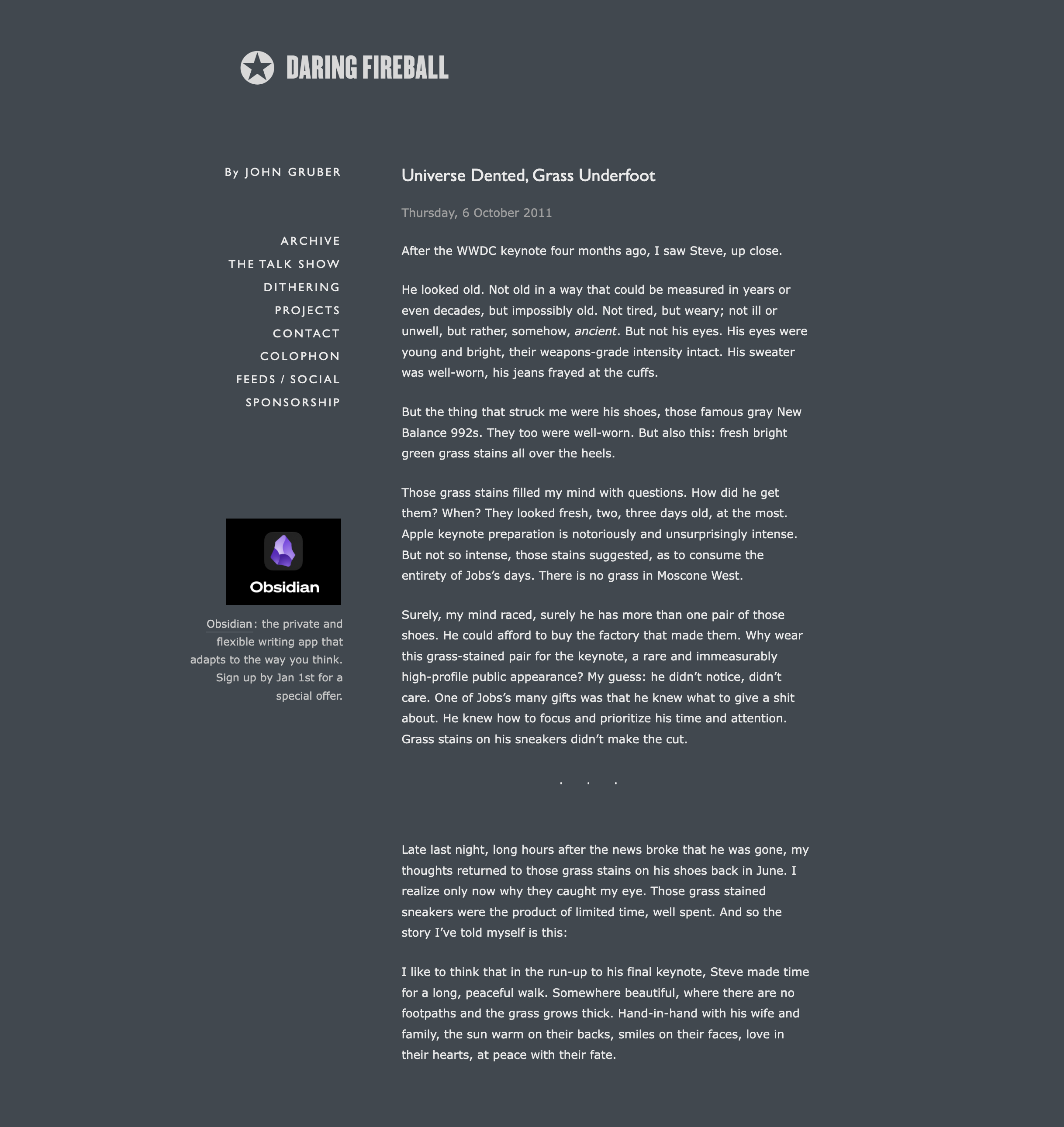 - Universe Dented, Grass Underfoot (📖 DaringFireball.net, 2011)