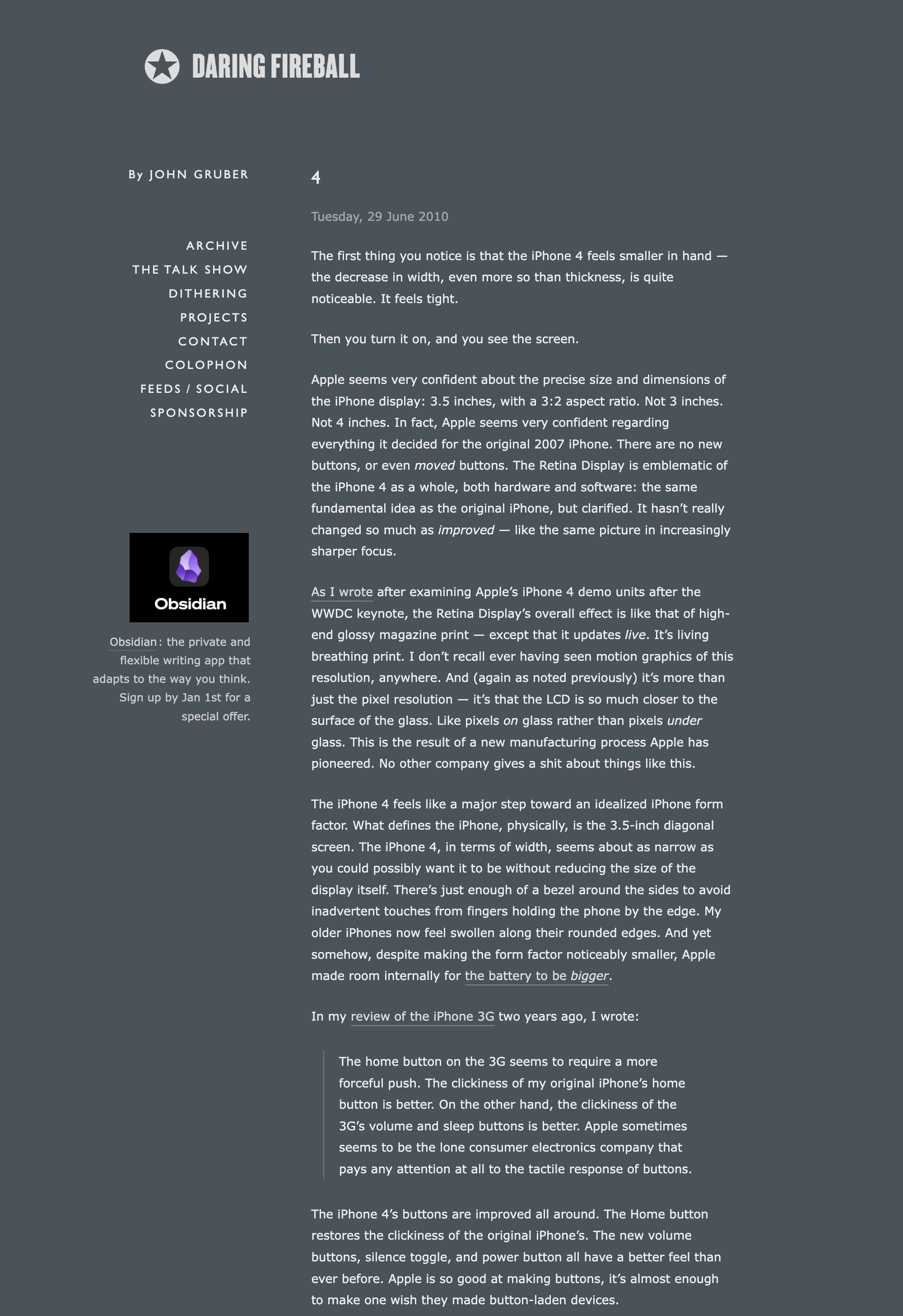 - Daring Fireball original iPhone first impressions (📖 DaringFireball.net, 2007)