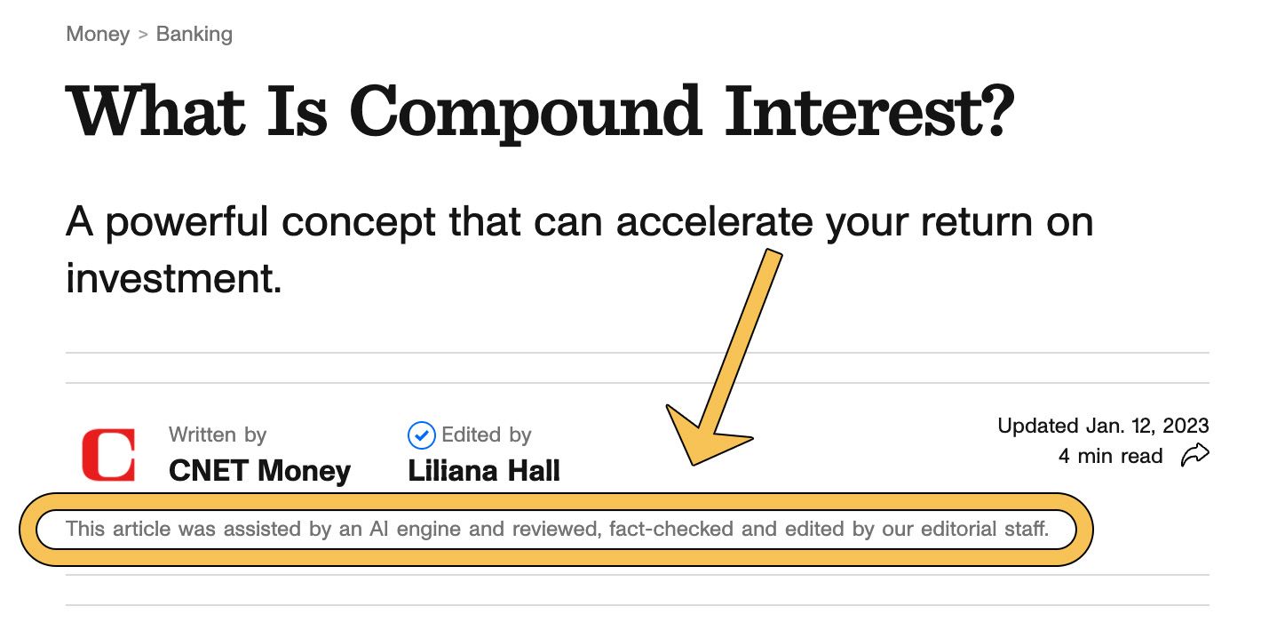 CNET finally spoke out this week, on 16 January 2023, with a lofty article about how they are doing this in an effort to “separate hype from reality.”