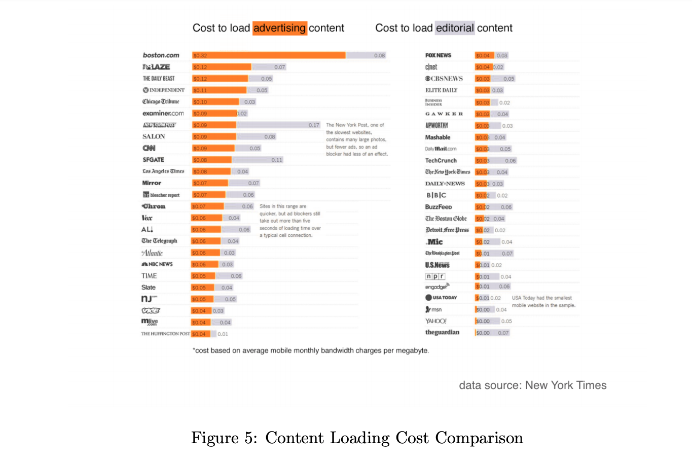 For more than half of these publications, it costs as much or more mobile data to load the advertising as it does to load the content!