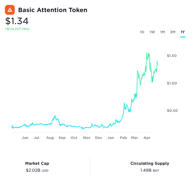 I've invested in Basic Attention Token because as Brave continues to grow, I see the potential for this to significantly disrupt the traditional ad industry. Google made a bunch of money by vertically integrating their systems — it stands to be seen if BAT will become adopted or not, but at the end of the day, I'm far more compelled by Brave and Basic Attention Token than I am for any advertising service offered by Google.