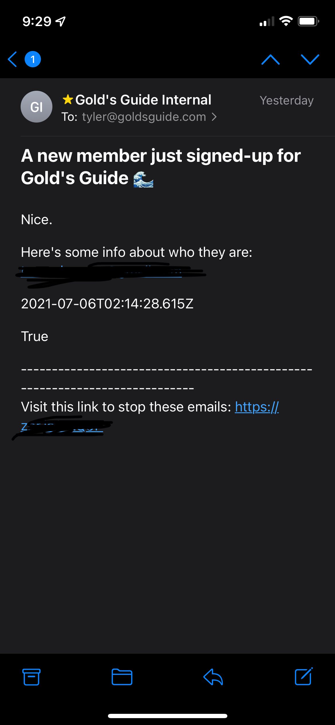 I also have Zapier automatically send me emails when new members subscribe to the Gold's Guide newsletter.